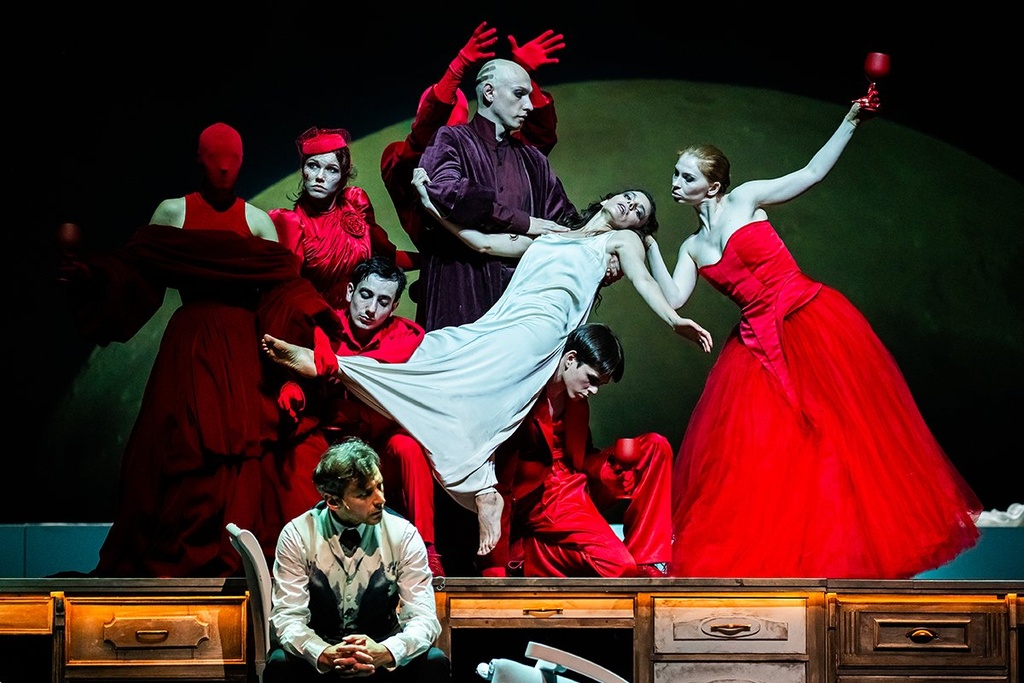 Завораживающие картины, строящиеся на образах подсознания в сюрреалистической логике сна. Театр художника, сочиняющего спектакль по законам пластических искусств, создавая у нас на глазах из подручных материалов — включая человеческие тела — картины и объекты, всю ту атмосферу, которой предстоит стать равной составляющей игре драматических актеров.