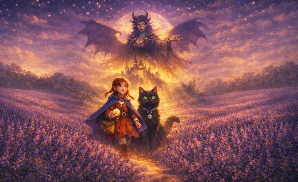 Отважная девочка Аглая вместе с загадочной и мудрой чёрной кошкой отправляются на таинственное лавандовое поле, чтобы вернуть родителей Аглаи домой, которых похитила злая Ведьма-Дракон Рюмисмире.