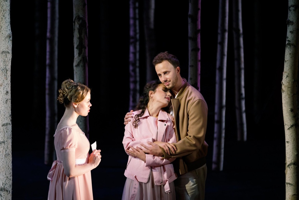 Эта встреча происходит в березовой роще. На сцене появляются пятьдесят семь настоящих берез, используется старинная мебель. «Прикосновение исполнителя к реальному предмету на сцене воспринимается как наше собственное. Этого не происходит в случае с бутафорией. Реальная вещь проживает жизнь — на ней царапины и шрамы, она полна тайн. Предметы на сцене выстраиваются в вещный таймлайн — от кровати конца XVIII века до венских стульев, которые стояли в ложах екатеринбургского театра, а теперь стали героями спектакля».