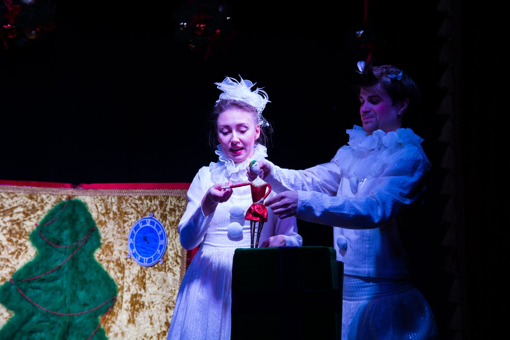 Спектакль сделан по типу концерта, где зажигательные и весёлые номера будут исполнять сами ёлочные игрушки. Наши мастера-художники сделали их яркими, красочными и очень живыми. Вот наши маленькие герои спектакля: весёлая компания ёлочных шариков, девочка-воздушная гимнастка, четвёрка гномов, мистер Печенька и, конечно же, символ Нового года. Они будут петь, танцевать, выполнять акробатические трюки и многое другое, что позабавит, порадует и удивит детскую публику.
