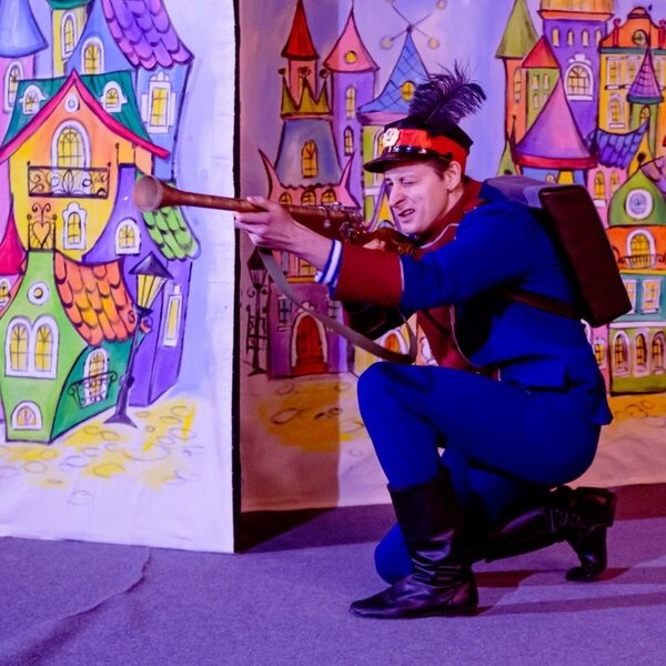 Множество историй написано по мотивам сказок Андерсена и про «Снежную королеву» и про «Принцессу на горошине» и про «Гадкого утёнка» — всех не перечесть. В нашем спектакле встретились персонажи двух его сказок: «Огниво» и «Новый наряд короля», а самым главным героем в них является солдат.