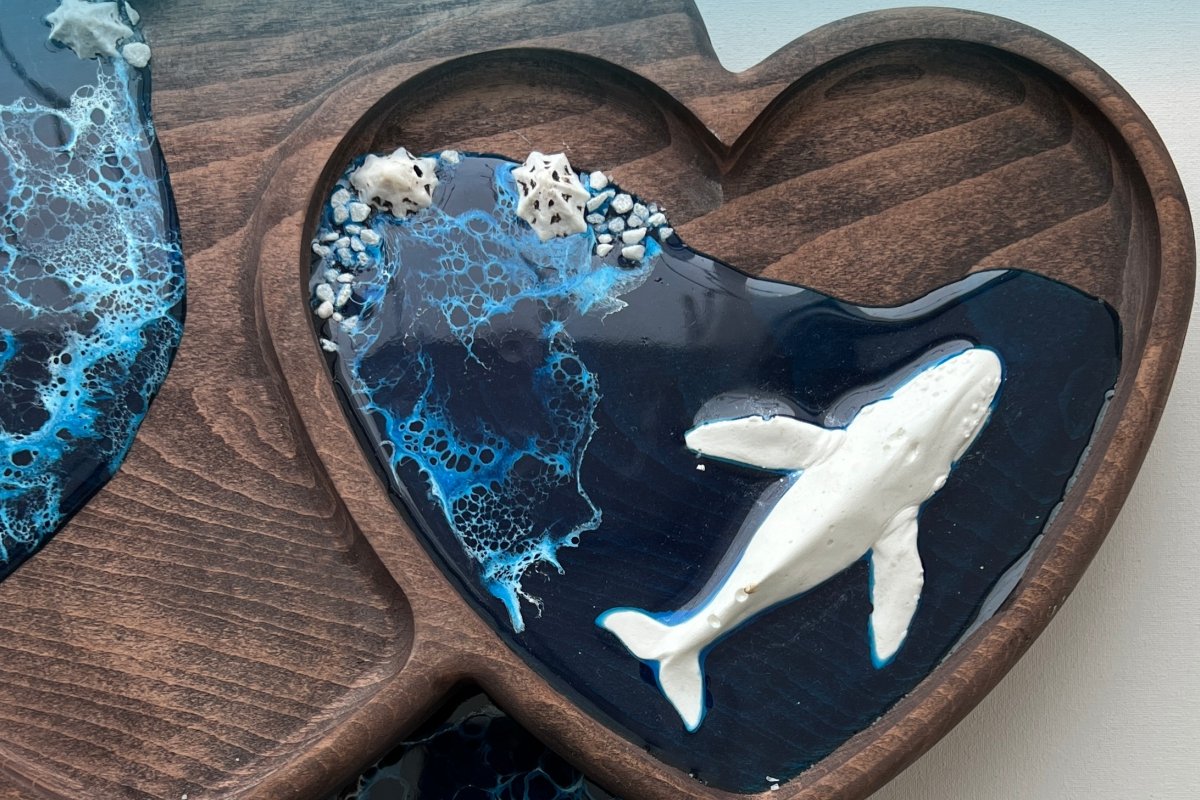 Согласитесь, почти каждому человеку хочется иметь у себя дома предмет, который уникален своим рисунком и историей создания? Добавьте уюта в романтический вечер и изготовьте менажницу своими руками. Это блюдо для сервировки позволит красиво, эффектно подать закуски и канапе. На нашем мастер-классе вы научитесь работать с эпоксидной смолой и создадите свое неповторимое изделие в морской тематике! На выбор разные морские жители — черепашки, киты, акулы и скаты!